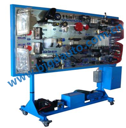 設(shè)備采用原車電器系統(tǒng)器件組成,包括:電源系統(tǒng)、起動(dòng)系統(tǒng)、照明系統(tǒng)、儀表系統(tǒng)、信號(hào)系統(tǒng)、音響系統(tǒng)、玻璃清潔系統(tǒng)、中控門鎖、玻璃升降器、電動(dòng)后視鏡、汽車?yán)群托铍姵氐取M饧酉到y(tǒng)主要包括: 故障設(shè)置系統(tǒng)、故障顯示裝置、驅(qū)動(dòng)電機(jī)、電源總開(kāi)關(guān)、檢測(cè)端子以及安全防護(hù)裝置等。本臺(tái)架可以完整展示車身電器系統(tǒng)的組成、結(jié)構(gòu)和工作原理,可以進(jìn)行車身電器系統(tǒng)常見(jiàn)故障的模擬、診斷和檢測(cè)實(shí)操訓(xùn)練,提高學(xué)生分析和解決實(shí)際問(wèn)題的能力,適合中高等汽車院校與培訓(xùn)機(jī)構(gòu)對(duì)學(xué)員進(jìn)行車身電器系統(tǒng)的教學(xué)需要。